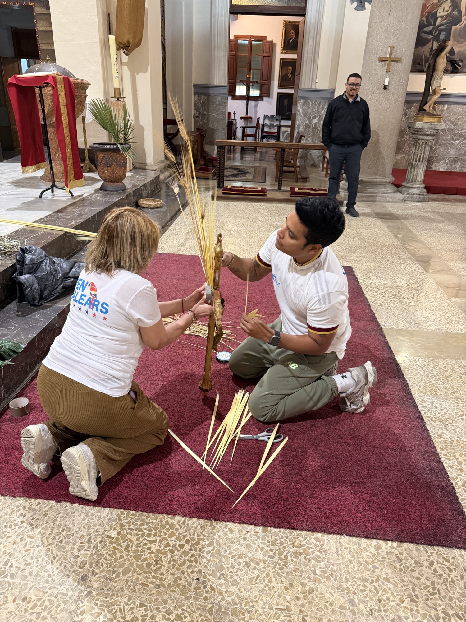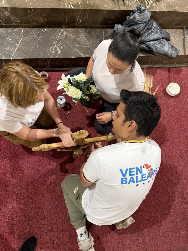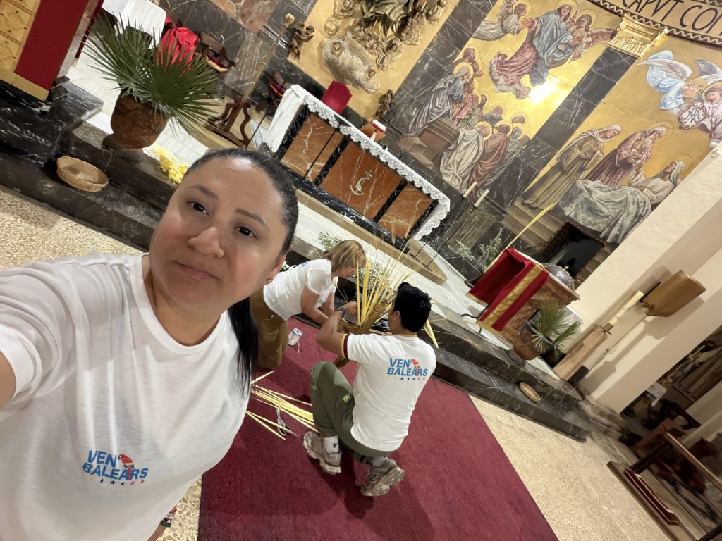 Integrantes de la asociación VENBALEARS acudieron a la Parroquia Inmaculada Concepción de Son Sardina con el propósito de acompañar a su comunidad y colaborar en los preparativos del Domingo de Ramos.